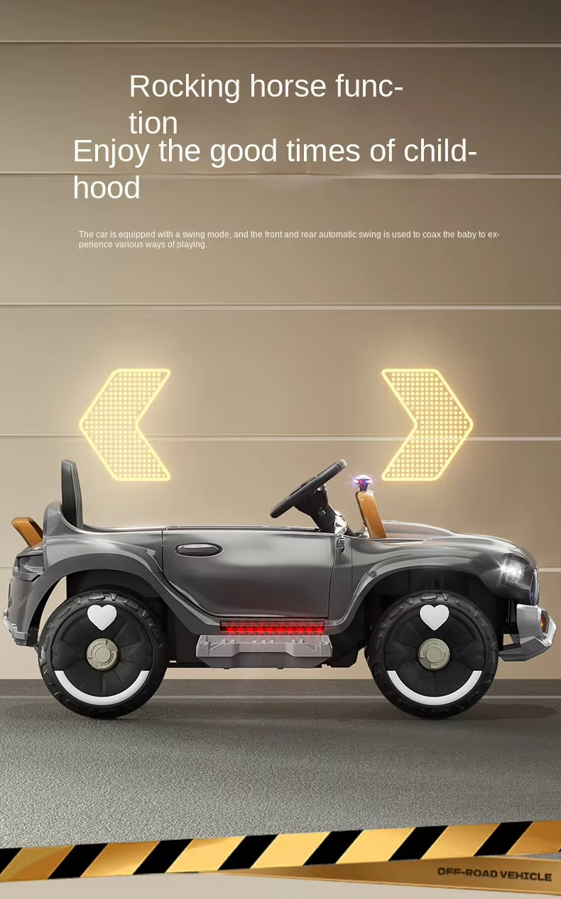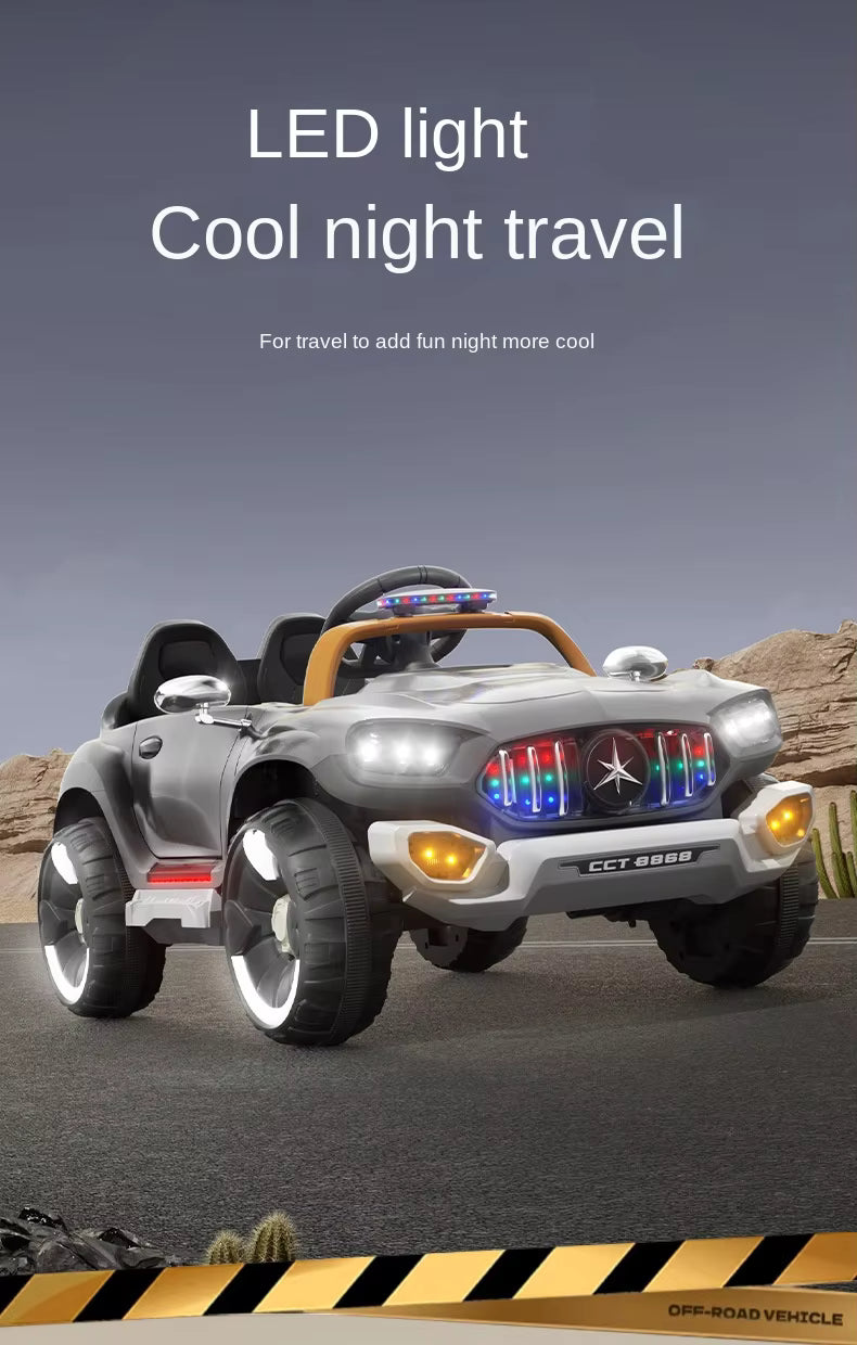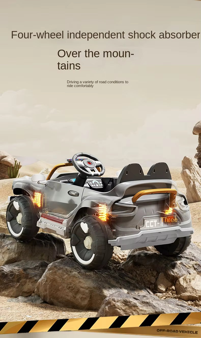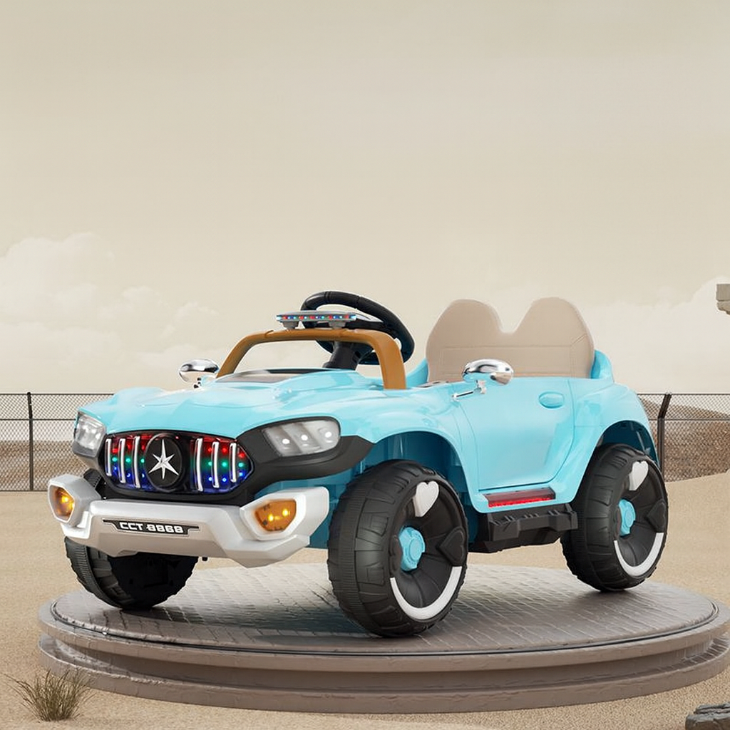 سيارة الدفع الرباعي للأطفال مصممة لتتحمل اللعب اليومي، وتوفر تجربة قيادة واقعية بفضل المقعد المريح والعجلات الكبيرة والإضاءات الأمامية الملونة اللي تخلي كل مشوار أحلى من الثاني.