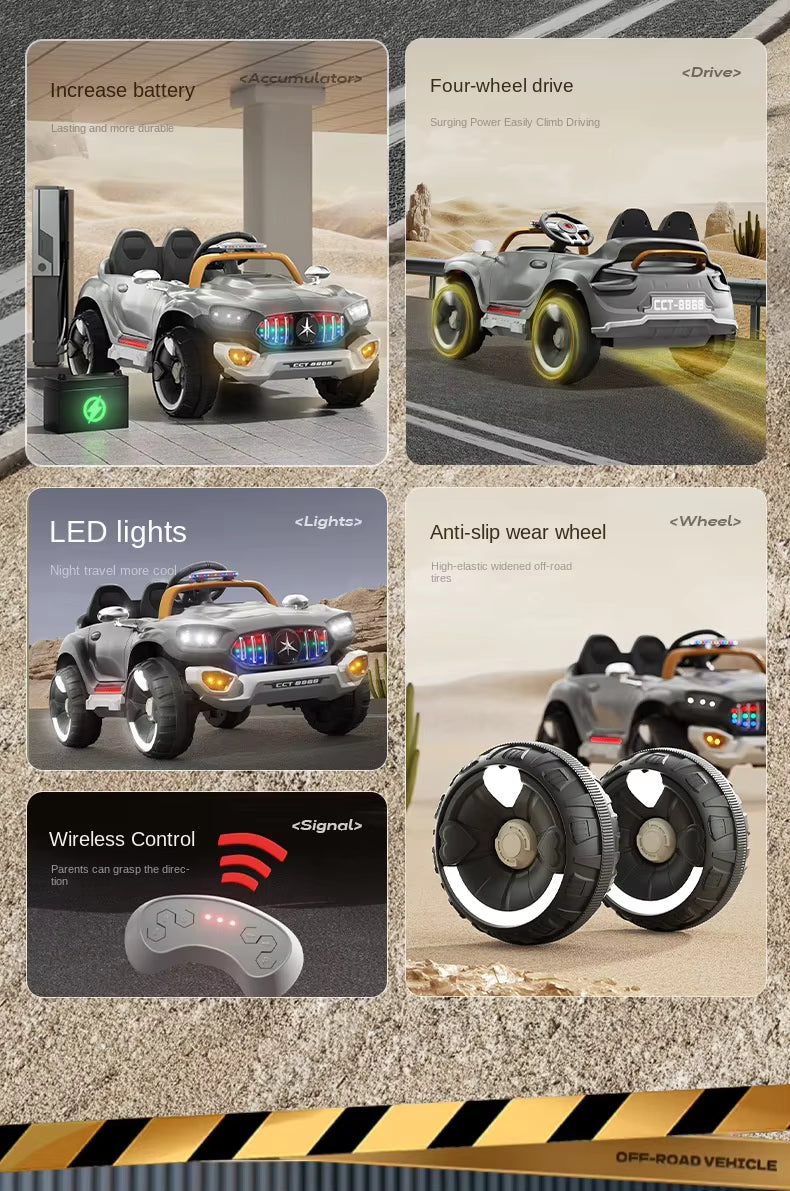 مزودة بدفع رباعي يعطي ثبات أقوى على الأرضيات المختلفة، سواء داخل البيت أو في الحوش. ومع نظام التحكم الأبوي، تقدر تتحكم بحركة السيارة بكل سهولة وتضمن سلامة طفلك في كل لحظة.